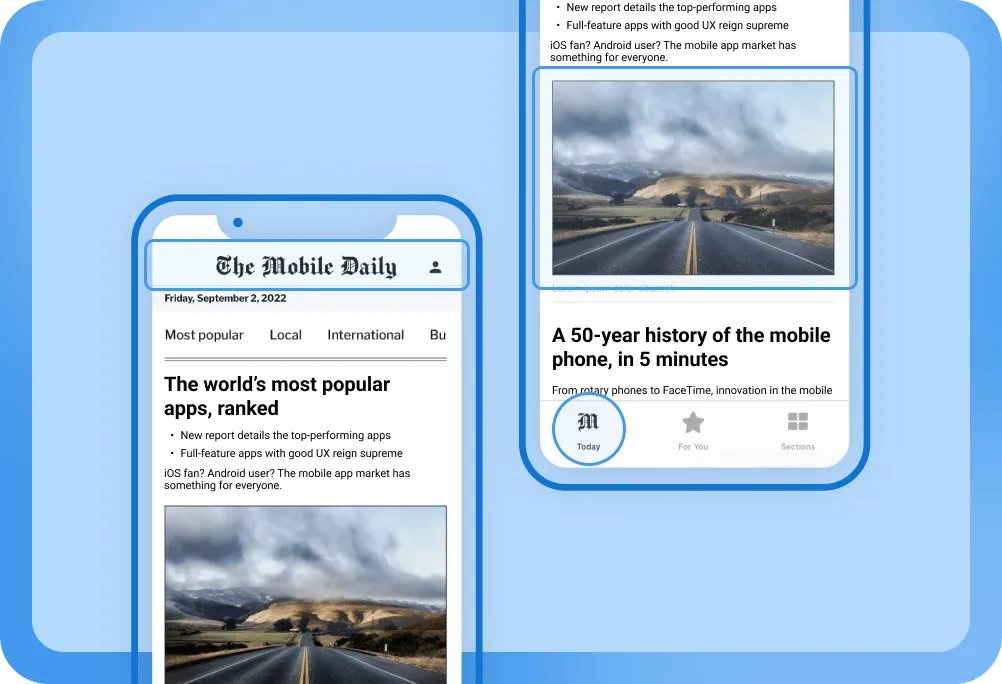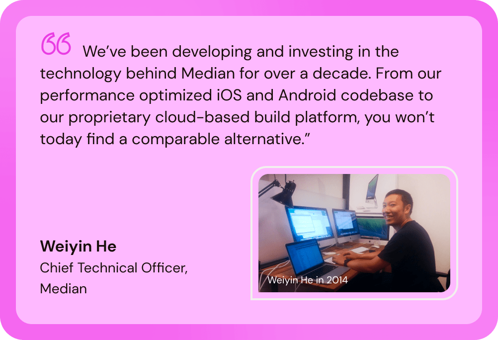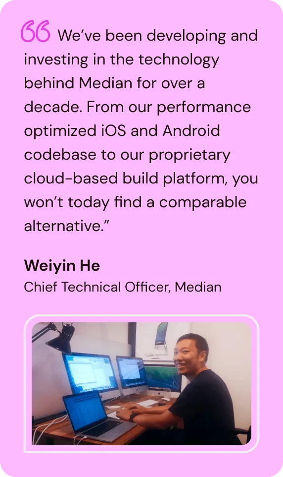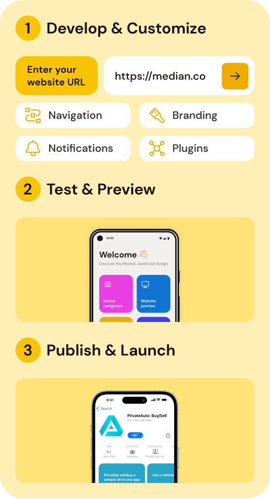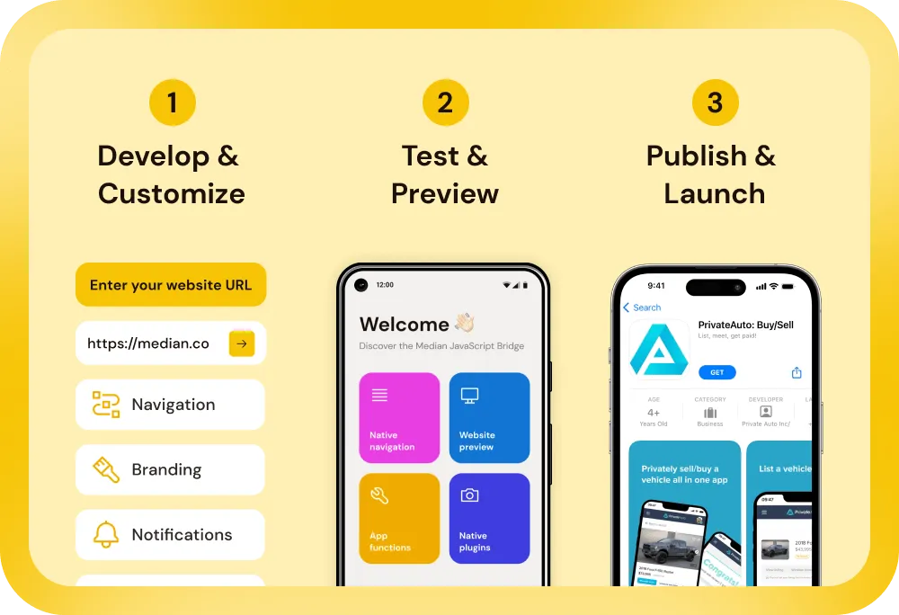 Most websites will automatically display content within apps created using Median.co automatically. To build highly immersive native apps as a web developer use the Median JavaScript Bridge to add a range of native functionality